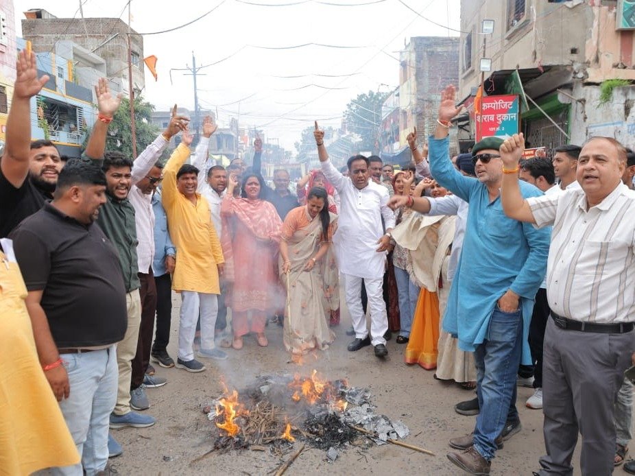 Congress MLA Barraiya’s effigy burnt in protest against objectionable remarks on women